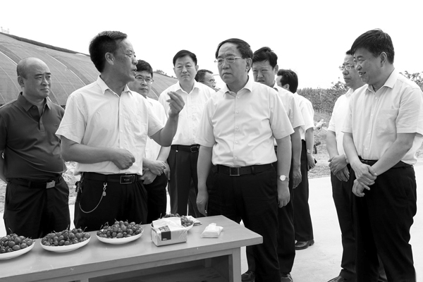 夏日的绛县,林密景秀,欣欣向荣。郝庄乡上吕村农业综合园区,大棚内富硒枣挂满枝头,枣树下套种的西瓜即将上市。该村2018年以来流转100余亩土地,大力发展设施农业,实现集体经济收入30万元。横水镇西灌底村通过流转500亩土地,以股份制形式,建设高标准樱桃示范基地,实现集体经济收入11万元。刘志宏走进大棚,仔细询问种植结构调整、合作社运营模式、集体经济收入等情况。他指出,发展现代农业、壮大集体经济,要注重培育新的经营主体,走公司化运营、工厂化管理的路子;要在前期试点的基础上深入推进分配机制改革,拿出一部分增量收入奖励农业科技人员,推进科技强农。