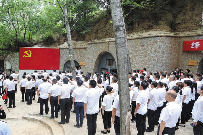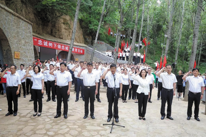 随后,在县委书记王宏伟的领誓下,全体党员举起右拳庄严宣誓,重温了入党誓词,聆听了忠诚树的故事,参观了迫马岭革命教育长廊,详细了解了迥马岭农村党支部的发展历史,认真倾听了绛县老一代无产革命家的奋斗历程,纷纷对革命先辈们的大无畏精神表示由衷的赞叹和钦佩。整个活动在大合唱《没有共产党就没有新中国》激扬的旋律中达到高潮,上千面党旗挥舞飘扬,一时间将整个山谷装扮成了“红色”的海洋。