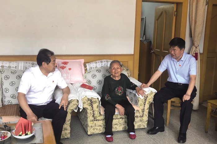 建国前老党员尹学鹅、江平贵,分别有着71年和69年的党龄。在两位老人家里,邓雁平和老人以及他们的家人围坐在一起,亲切地拉家常,详细询问老人的党龄、身体状况、家庭收入、子女就业等情况。当得知两位老人都已经90多岁高龄、身体依然健朗时,邓雁平祝福老人健康长寿,幸福生活,并叮嘱当地负责同志要关心关爱老人,帮老人排忧解难。