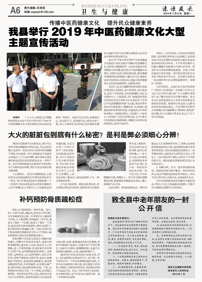 王宏伟要求,县域内各大医疗机构和广大医务工作者要进一步创新工作的方式方法,加大宣传力度,使广大人民群众更加深入地了解中医药文化的博大精深,努力在全社会营造更加关心支持中医药事业发展的良好氛围;要教育引导全县人民群众改变传统的就医观念,自觉用好中医药养生和保健,切实缓解群众“看病准、看病贵”的问题,努力为建设“绛老长寿之乡”打下坚实的基础。