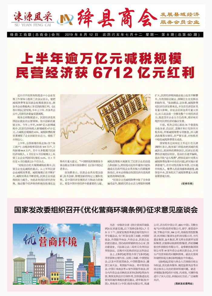 税务总局数据显示,民营经济是我国创业就业的主要领域、技术创新的重要主体。今年上半年,10387亿元新增减税中,民营经济纳税人新增减税6712亿元,占减税总规模的65%。减税降费政策显著增强了企业创新创业活力,提振了市场信心。