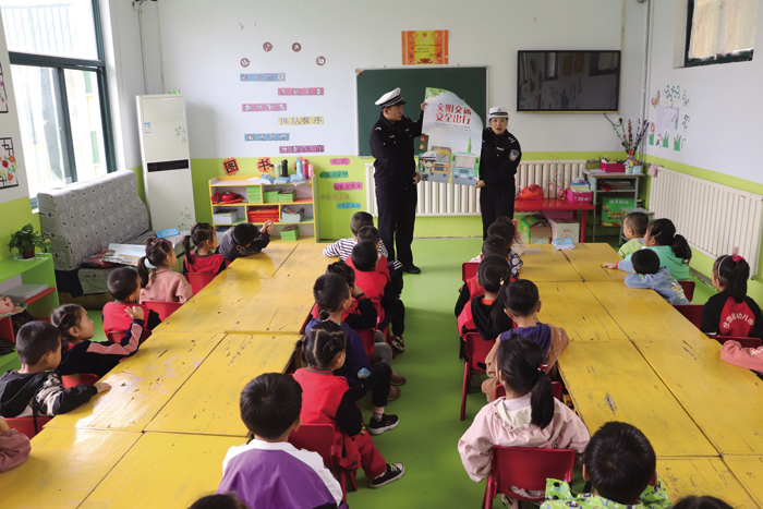本报讯 为进一步提高广大中小学生的交通安全意识、遵纪守法意识,有效预防和减少涉学涉校道路交通事故的发生,使小朋友们从小树立文明出行理念。9月20日,绛县公安局交通管理大队宣传民警深入辖区博阳幼儿园,开展秋季道路交通安全宣传教育进校园活动。宣讲中,民警一边向小朋友们发放宣传资料,一边向孩子们广泛普及与其息息相关的交通安全知识,结合小朋友们年龄小、注意力不集中的特点,通过现场你问我答的互动方式,让孩子们在寓教于乐中学到许多交通安全知识。最后,民警希望老师能将交通安全知识纳入到课堂当中,言身传教,给孩子们起一个文明参与交通的模范带头作用。及形成警校合力,共同关注孩子的安全。