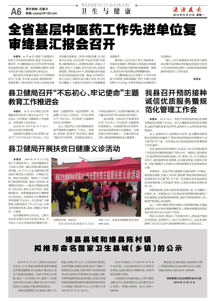 全省基层中医药工作先进单位复审绛县汇报会召开