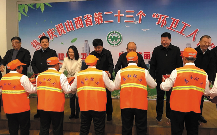 会上,山西志信化工有限公司、山西恒大化工有限公司向环卫部门捐赠资金;县领导为环卫工人发放慰问品。
