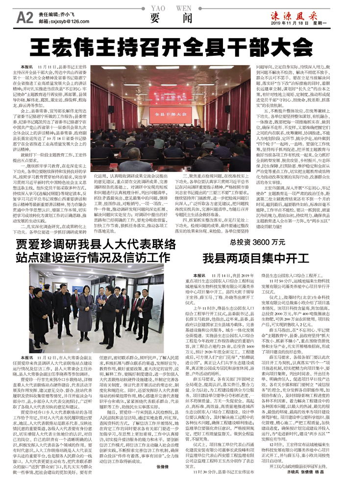 本报讯 11月12日,市人大常委会副主任贾爱珍来我县调研人大代表联络站点建设运行情况及信访工作,县人大常委会主任孙晓,县人大常委会副主任李晓燕等参加调研。