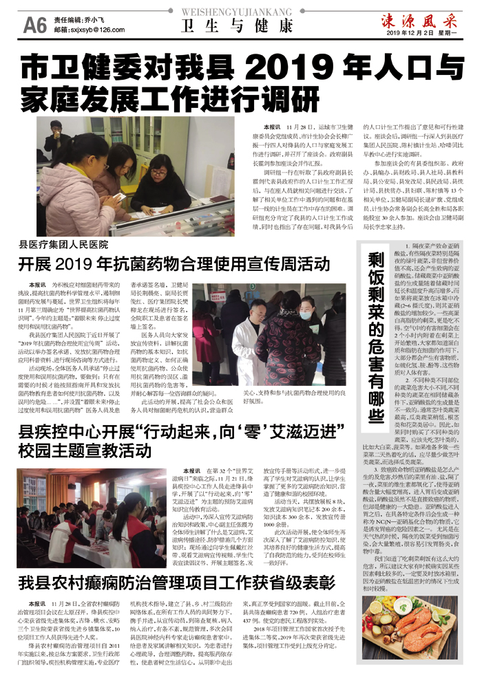 市卫健委对我县2019年人口与家庭发展工作进行调研