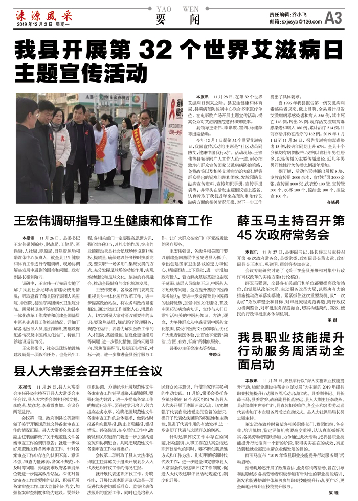 今年12月1日是第32个世界艾滋病日,我国宣传活动的主题是“社区动员同防艾,健康中国我行动”。活动现场,王宏伟等县领导同广大工作人员一道,耐心细致地向群众宣传国家艾滋病病防治策略、免费政策以及相关艾滋病防治知识,解答群众提出的疑难问题和困惑,发放预防艾滋病宣传资料、宣传知识手册、宣传手提袋等;并带头在活动主题倡议墙上签名,认真听取了我县近年来在预防和治疗艾滋病方面的相关情况汇报,对下一步工作提出了具体要求。
