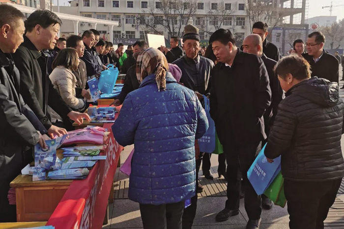 县委书记王宏伟、县长薛玉马等领导走到卫健宣传台前,倾听工作人员给过往群众宣传卫生计生有关政策。