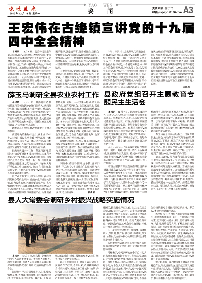 王宏伟在古绛镇宣讲党的十九届四中全会精神