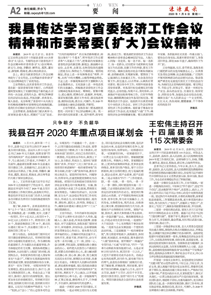 我县传达学习省委经济工作会议精神和市委常委(扩大)会议精神