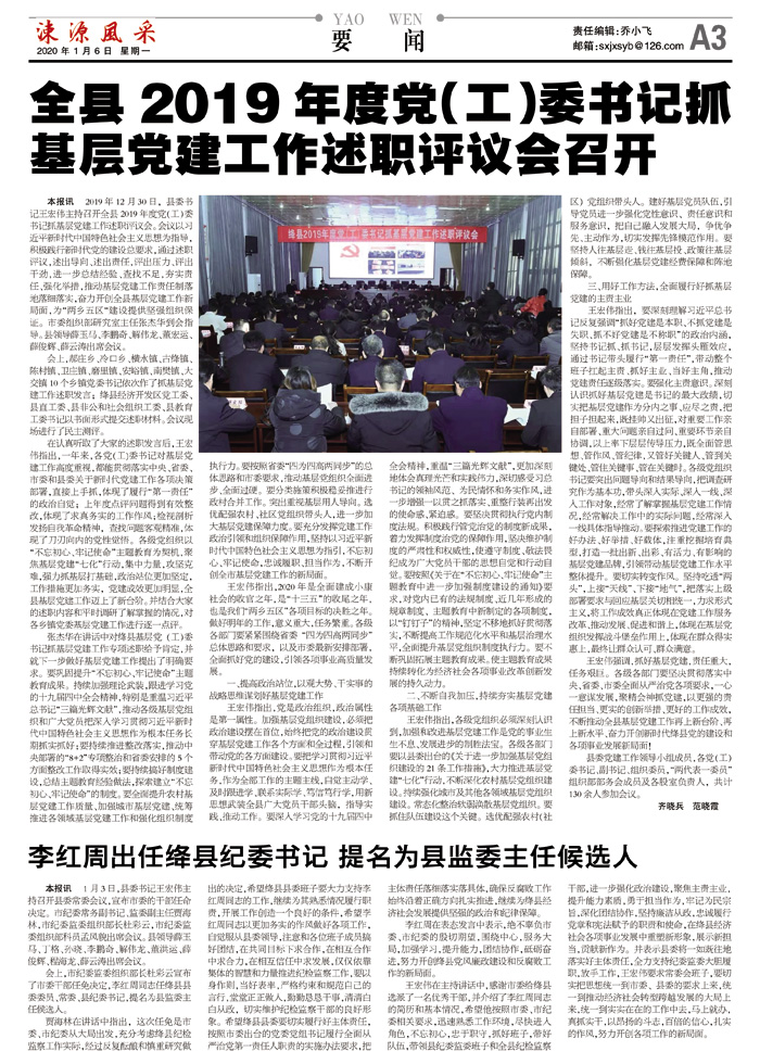 全县2019年度党(工)委书记抓基层党建工作述职评议会召开