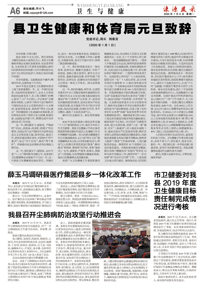 县卫生健康和体育局元旦致辞