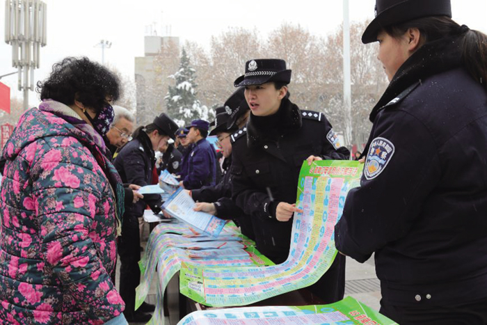 活动现场,通过悬挂横幅、摆放宣传展板、发放宣传资料、设立咨询台等多种形式展开宣传。民警向群众普及盗窃、两抢、诈骗以及网络电信诈骗等案件的安全防范知识;用真实案例讲解身边发生的案子,以案说法,让群众深受触动和教育,进一步提升群众安全防范意识和能力,让广大群众切实感受到110就在身边,安全就在身边。现场民警同群众进行互动,面对面交流,广泛征求群众意见和建议,不断提升接警工作效率,加强社会面治安防控能力,为广大群众推出2020年便民服务新举措。