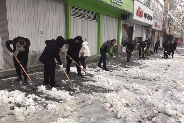 虽然天气寒冷,大家不畏严寒、干劲十足、一派热火朝天的景象,经过大家努力,街道上以及学校周边的冰雪均已清扫干净,方便了广大居民和学生的安全出行。