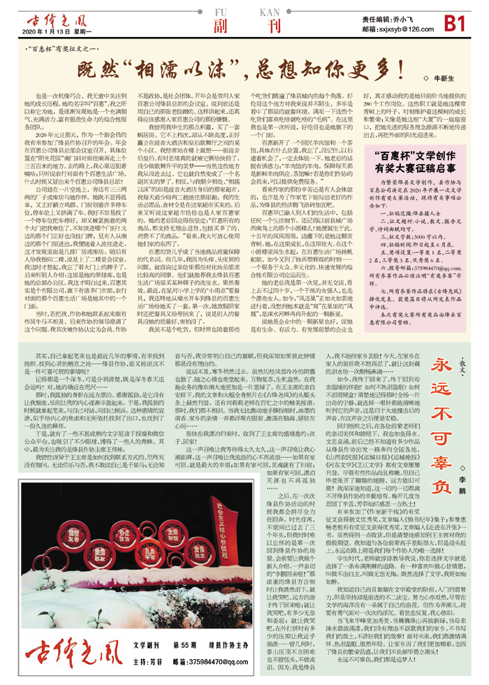 为繁荣绛县文学创作,县作协与百惠公司决定在2020年开展一次文学创作有奖大赛活动,现将有关事项公告如下: