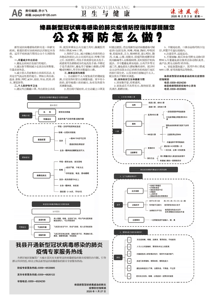 新型冠状病毒感染的肺炎是一种新发疾病,根据目前对该疾病的认识制定本指南,适用于疾病流行期间公众个人预防指导。