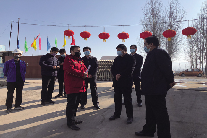 本报讯 2月13日,县委书记王宏伟带领县卫健局、工信局负责人,到部分重点全业调研指导疫情防控和复工复产情况。县上及开发区领导李鹏奇、王述江、张瑞士、侯东良等先后陪同。