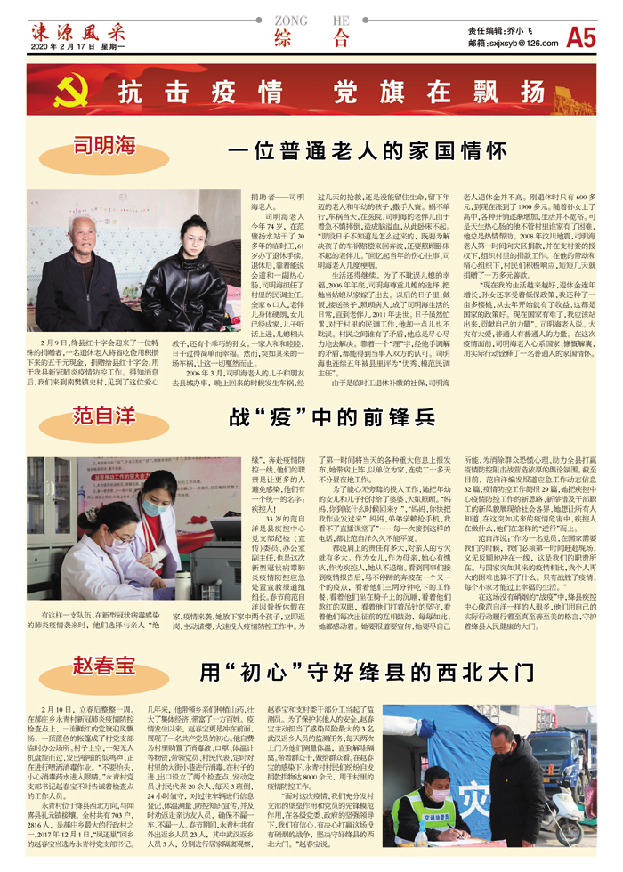 “现在我的生活越来越好,退休金连年增长,孙女还享受着低保政策,我还种了一亩多樱桃,从去年开始就有了收益,这都是国家的政策好。现在国家有难了,我应该站出来,贡献自己的力量”。司明海老人说。大灾有大爱,普通人有普通人的力量。在这次疫情面前,司明海老人心系国家、慷慨解囊,用实际行动诠释了一名普通人的家国情怀。