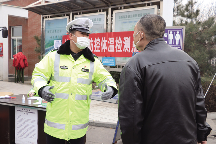 岳庚武告诉记者,在这场关乎生命安全和身体健康的特殊战斗中,他和同事们不仅是战斗员、防控员,更是为人民服务的服务员、宣传员。“请驾驶员关掉暖风,打开车窗保持五分钟,保持正常体温,自觉接受检测”,这句话他们在检查岗不知说了多少道,疫情无情、人间有爱、警民同心,抗击疫情的路上,大家的心紧紧在一起!