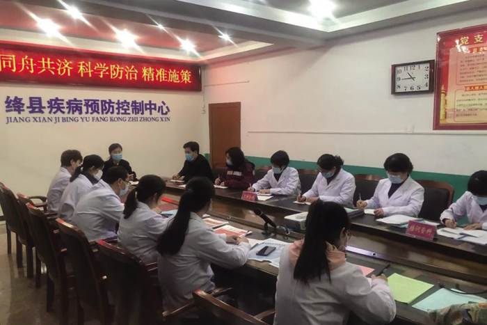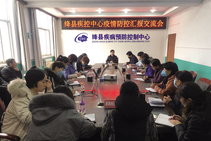 8∶30 疾控中心主任齐医变召开各防控小组会议。齐医变宣布绛县第一例新冠肺炎病例昨天晚上确诊;听取各小组昨天工作汇报,安排今天工作内容,并特别强调要做好确诊病例家庭的消杀工作;和大家一起学习了上级关于疫情防控的最新指示和要求。