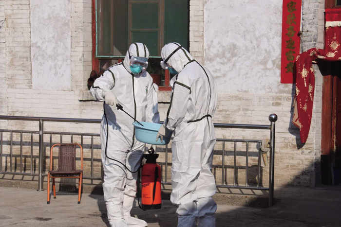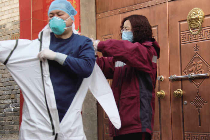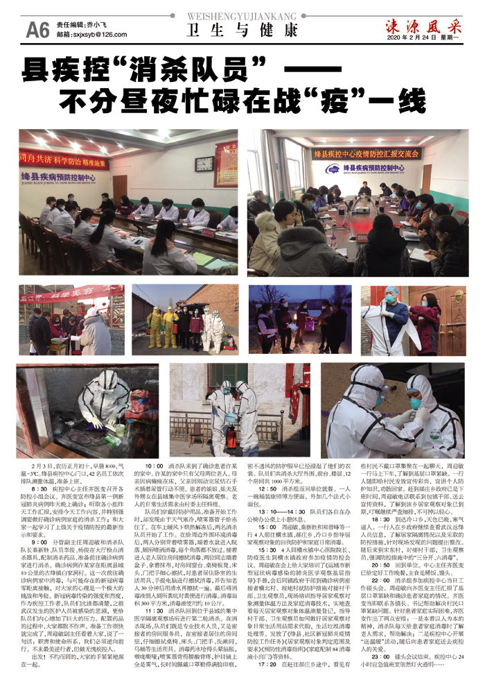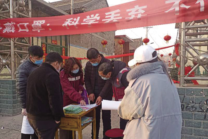 2月3日,农历正月初十,早晨8∶00,气温-3℃。绛县疾控中心门口,42名员工依次排队测量体温,准备上班。