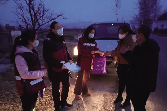 22∶00 消杀组参加疾控中心当日工作碰头会。周迎敏向齐医变主任汇报了基层口罩紧缺和确诊患者家庭的情况。齐医变当即联系各镇长、书记帮助解决村民口罩紧缺问题。针对患者家庭实际困难,齐医变作出了两点安排:一是本着以人为本的精神,消杀队每天给患者家庭消毒时了解老人需求,帮助解决;二是疾控中心开展“送温暖”活动,随后向患者家庭送去疾控人的关爱。