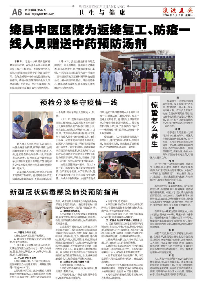 绛县中医医院为返绛复工、防疫一线人员赠送中药预防汤剂