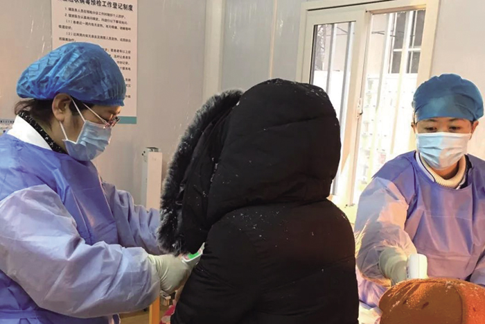 按照县卫健局统一要求,自2月6日开始,医院实行24小时发热预检分诊,在严寒的冬夜里,为了不那么冷,他们在隔离房里走来走去以保持身体热量。为减少穿脱隔离衣、摘脱手套造成污染,他们干脆尽量不喝水少上厕所,时间一长,腿都站麻了,酸胀难受。晚上一旦遇上发热患者,他们及时上报值班领导,合理安排患者及时就医......所有的医护们身上都出现了差不多的“症状”——嘴唇爆皮,嗓子眼冒烟,却没有一个人叫苦喊累......