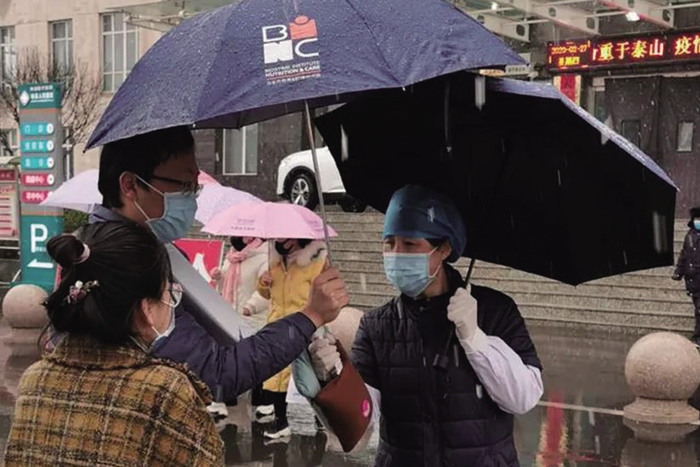 1月21日,医院自启动应急处置及防控工作预案以来,临床服务部申瑾护士长带领着科员们严格进行预检分诊,全员到位,加班加点开展防控工作。1月27日,发热预检分诊移至医院大门口,所有行政人员参与预检分诊工作,他们引导每一位前来就诊的患者至预检处,由医护人员测量体温、详细问诊是否有流行病学史;若有来自疫区或者接触过来自疫区的发热患者,联系发热门诊,由行政人员将患者安全护送至发热门诊。努力做到早发现、早报告、早隔离、早诊断、早治疗,为尽早治疗打下良好基础。