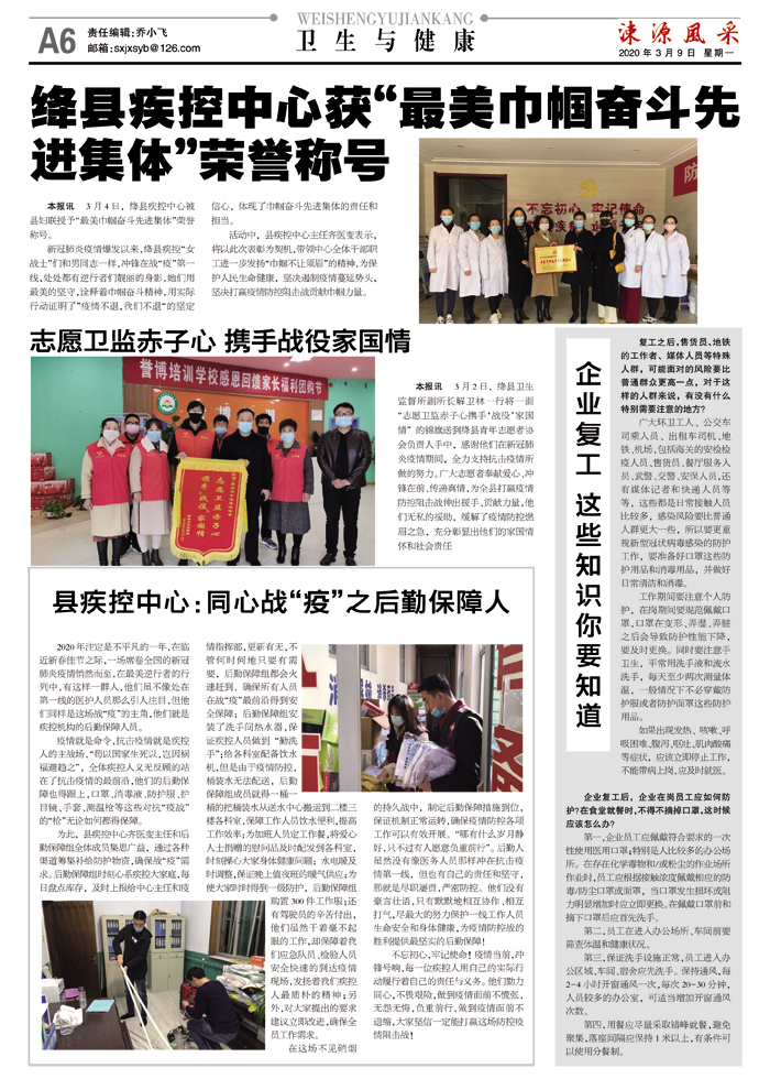 绛县疾控中心获“最美巾帼奋斗先进集体”荣誉称号