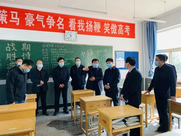 本报讯 3月23日,县委书记王宏伟带领县公安、教育、卫健、市场监管、疾控中心、卫生监督所等部门负责人,就我县春季学期高三年级开学准备工作进行督导检查。县委常委、政府副县长董宏运,政府副县长、县公安局局长巩建明等陪同。