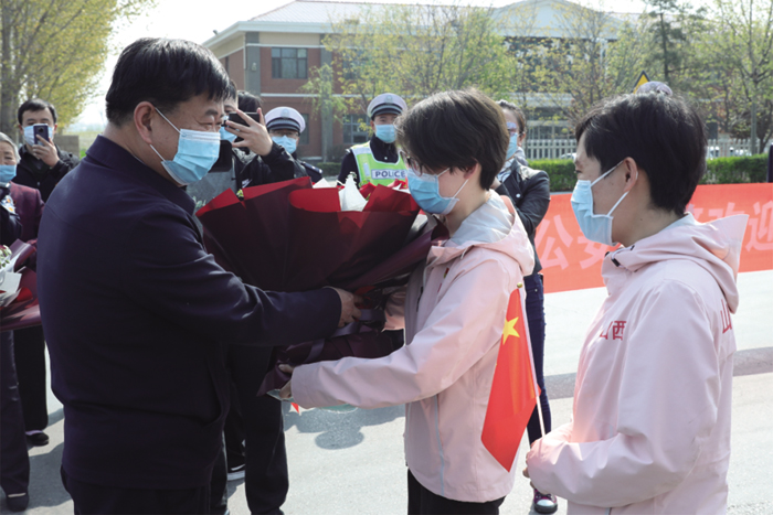 仪式上,县委书记王宏伟代表县四大班子及30万古绛儿女为援鄂英雄李红霞、李亚如送上鲜花,县委副书记、县长薛玉马为她们送上慰问金。