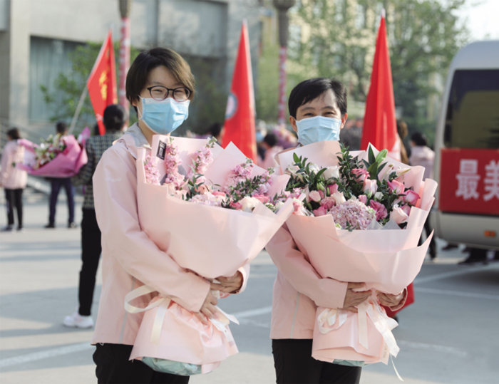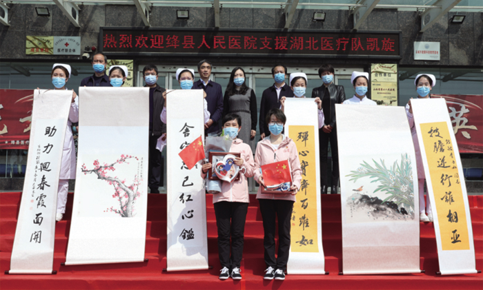 本报讯 经过14天的集中休整,4月6日,绛县人民医院援鄂最美姐妹花李红霞、李亚如从运城驻地平安回家。县委、县政府在闻垣高速绛县西口举行欢迎仪式,以最高礼仪迎接援鄂战疫英雄凯旋。