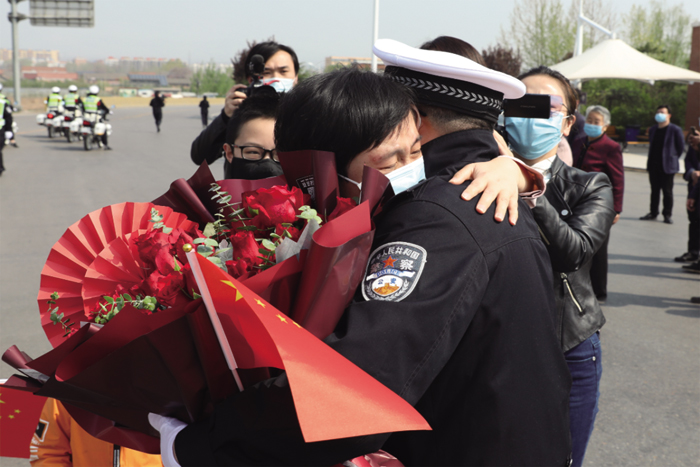 欢迎仪式后,铁骑开道、交警护行……我县以最高规格、最深敬意护送着“最美逆行者”李红霞、李亚如回家。