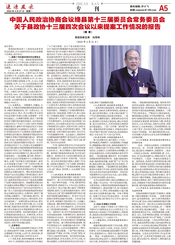 中国人民政治协商会议绛县第十三届委员会常务委员会关于县政协十三届四次会议以来提案工作情况的报告