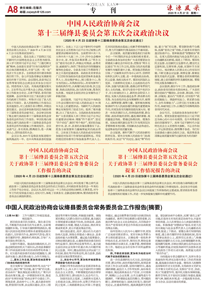 中国人民政治协商会议第十三届绛县委员会第五次会议政治决议