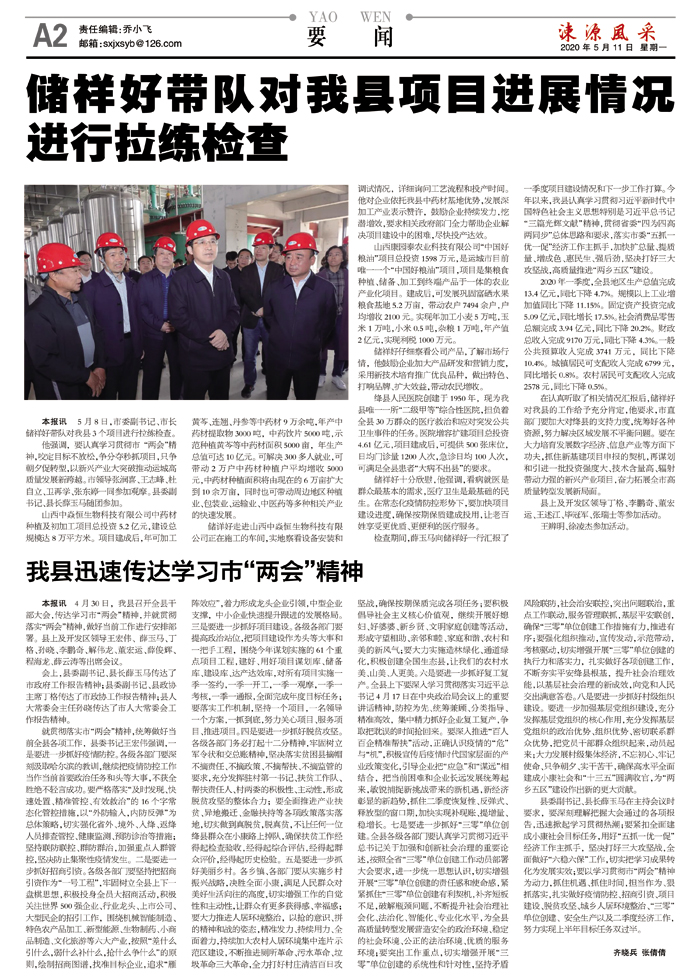 储祥好带队对我县项目进展情况进行拉练检查
