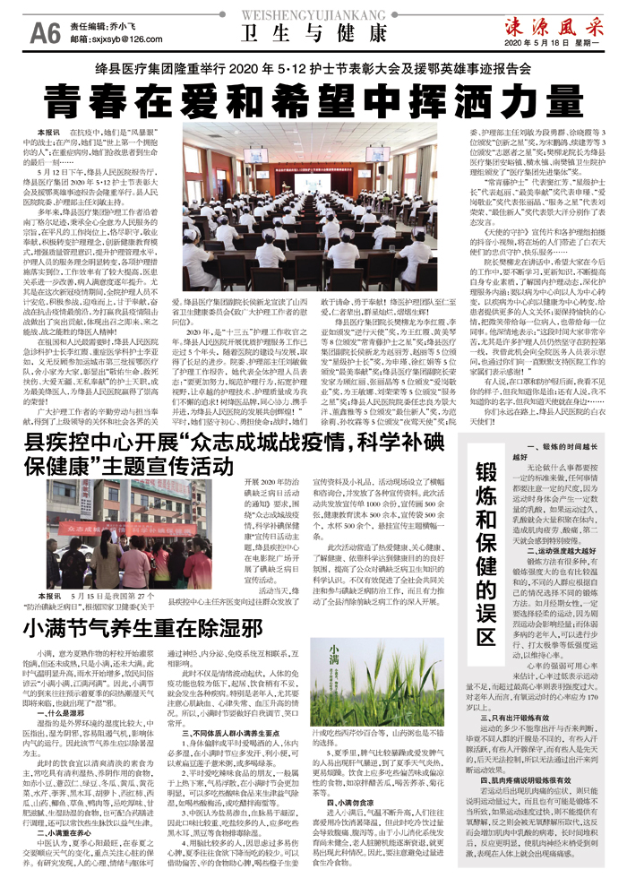 5月12日下午,绛县人民医院报告厅,绛县医疗集团2020年5·12护士节表彰大会及援鄂英雄事迹报告会隆重举行。县人民医院院委、护理部主任刘敏主持。
