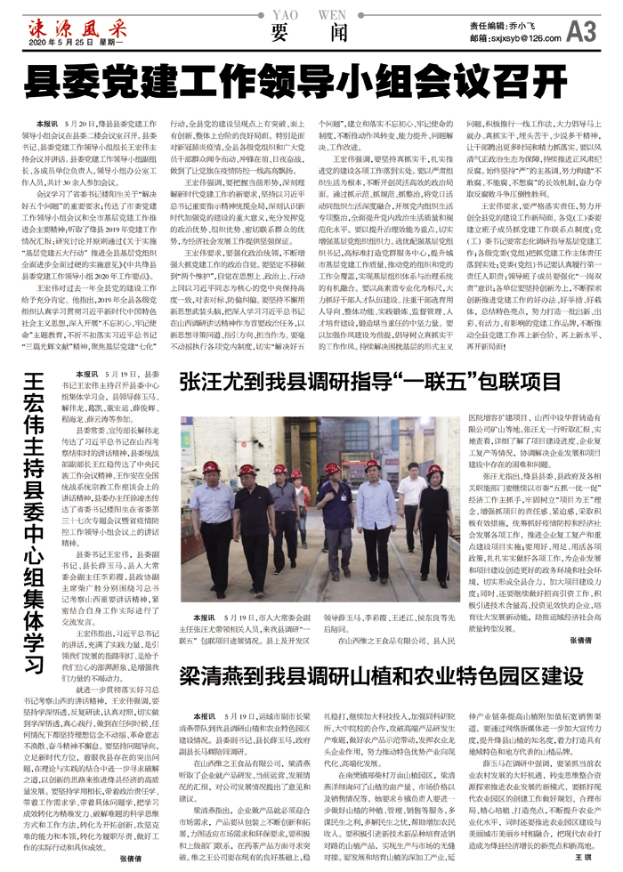 会议学习了省委书记楼阳生关于“解决好五个问题”的重要要求;传达了市委党建工作领导小组会议和全市基层党建工作推进会主要精神;听取了绛县2019年党建工作情况汇报;研究讨论并原则通过《关于实施“基层党建五大行动”推进全县基层党组织全面进步全面过硬的实施意见》《中共绛县县委党建工作领导小组2020年工作要点》。