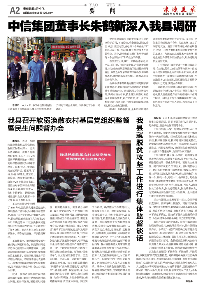 中信集团董事长朱鹤新深入我县调研