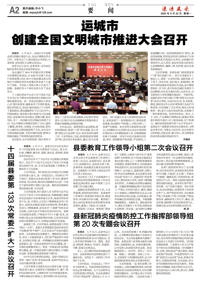 运城市创建全国文明城市推进大会召开
