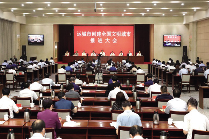 本报讯 6月18日,运城市召开创建全国文明城市推进大会,会议以视频会形式召开,市委书记丁小强出席会议并讲话,市委常委、宣传部长王志峰主持会议。
