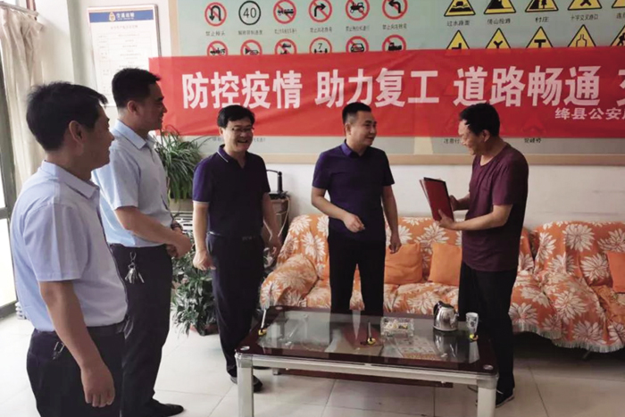 本报讯 近日,县行政审批服务管理局局长兰伟、副局长马凯、规划管理和建设工程股股长王斌、不动产登记中心主任任建亮到绛县公共汽车有限公司送证到家。