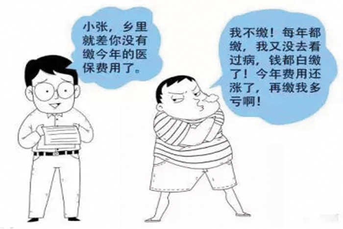 答1:我们每个人都面临着不确定的疾病风险,医保就是用来防范化解医疗费用风险的。基本原则是互助共济,健康的人帮助生病的人,大家每人都拿出一小部分钱放到一起,汇成一个大的基金池,给有需要的人用,也就是“我为人人,人人为我”。小张以前没用到医保,不代表以后都用不到,等到小张生病需要用钱的时候也可以获得医保的保障,用的就是这个基金池中大家一起出的钱。比如邻村的王强拒绝参加医保,去年得了癌症,结果全部自费,四处借钱,掏了 20 多万元,事后算算如果参加医保,可能自己只需要掏几万元,后悔得不得了。所以小张参加医保绝对不亏。