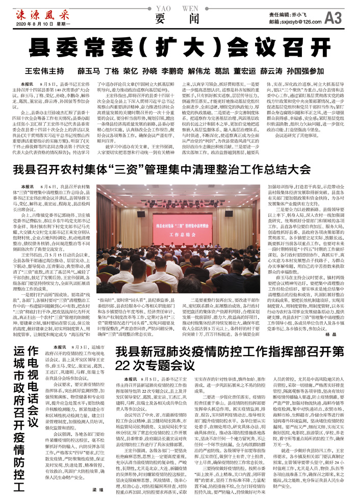 我县新冠肺炎疫情防控工作指挥部召开第22次专题会议