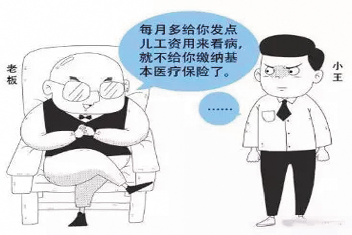问2:小王在一个私营企业工作。老板说,每月多发给你一点儿工资用来看病,就不给你缴纳基本医疗保险了。这样可以吗?