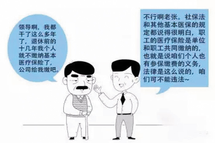 问3:张师傅在某企业连续工作20年,是公司的老员工了。张师傅跟企业领导讲,我都干了这么多年了,退休前的10几年我个人不缴纳基本医疗保险费了,公司缴费就行了。这样缴费行吗?
