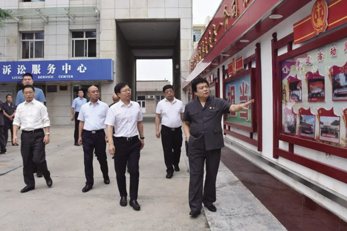 管应时副院长一行先后参观了绛县法院党建文化墙、扫黑除恶工作专版、支部风采展示台等版面,观看了绛县法院党建专题片《核心聚力守正义》,并深入诉讼服务中心、意识形态大讲堂、党员活动中心、执行指挥中心、信息化机房等场所,实地查看了具体工作开展情况,最后在五楼会议室召开了座谈会。
