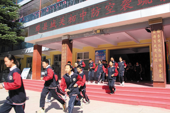 城关初中举行防空袭疏散演练活动