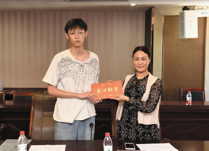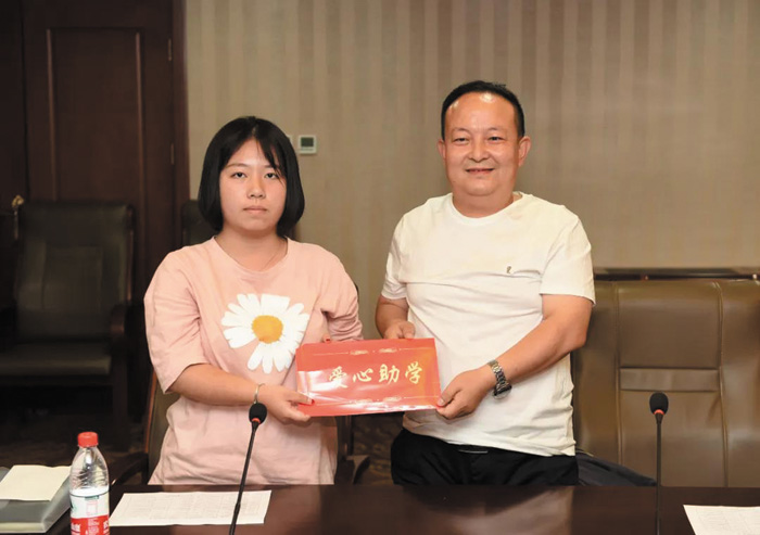 众莱日用品向受助大学生捐助助学金